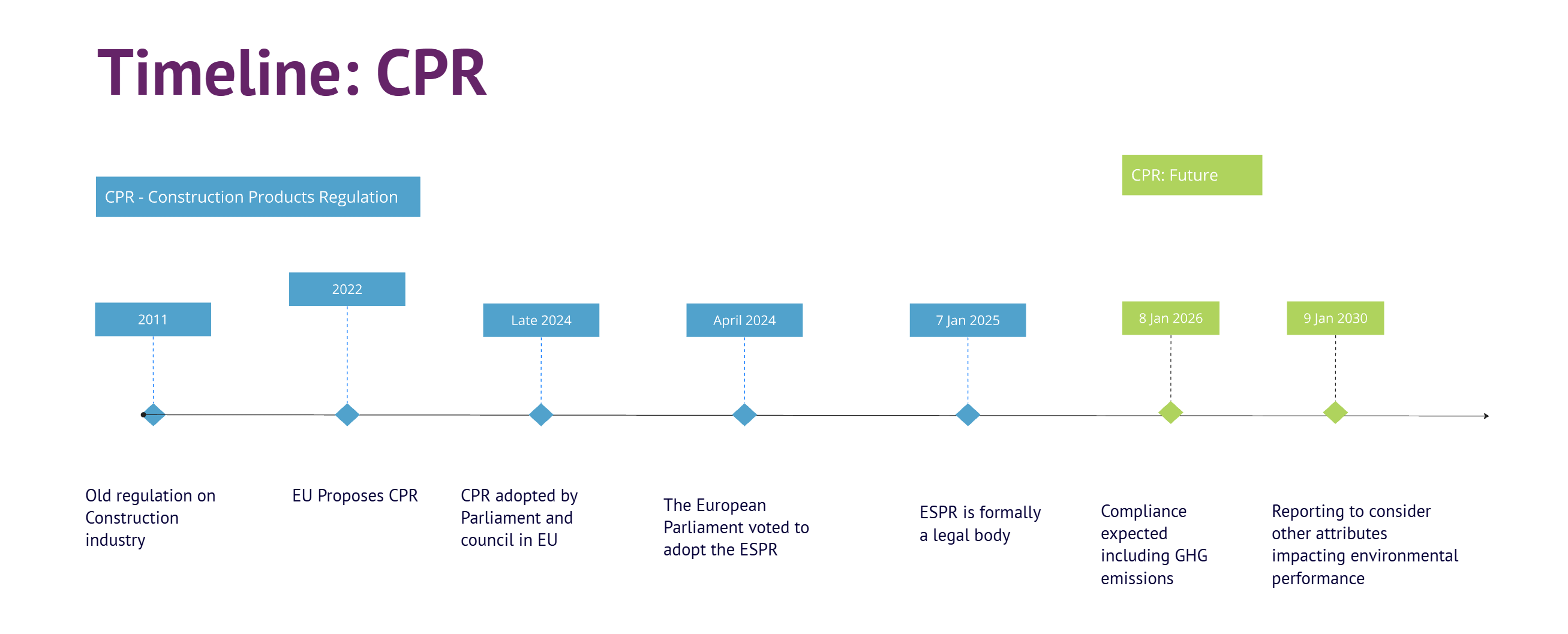 CPR mandates DPP for the Construction industry. It contains the basic attributes of DPP from ESPR and adds industry-specific fields (e.g., BIM tools), as mentioned above in our conversation.
